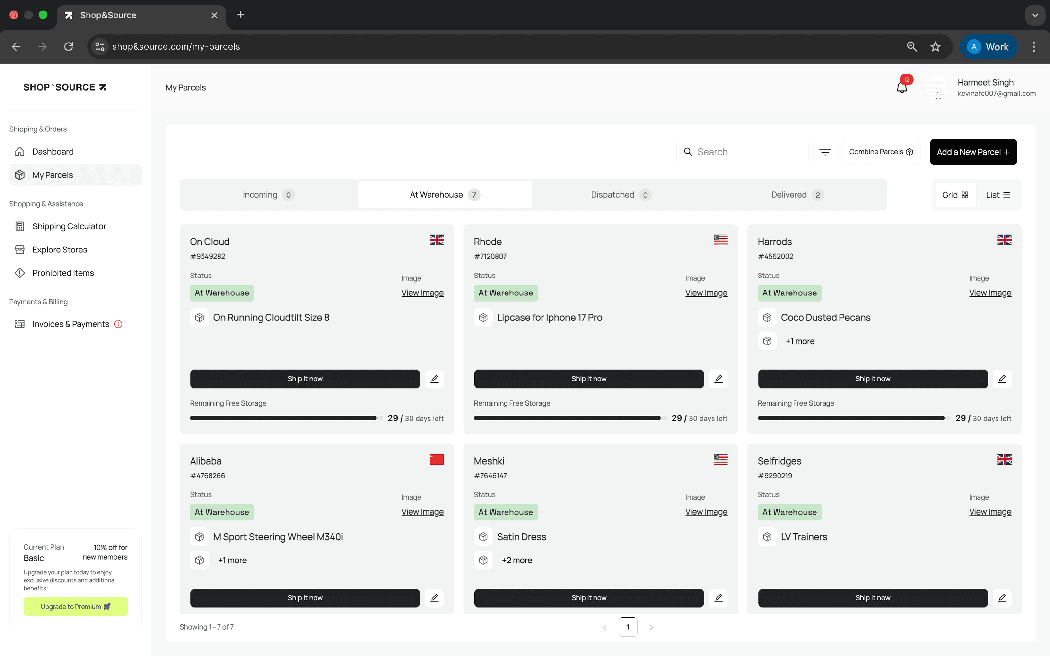 Instant access to your US, UK, China & India shipping addresses